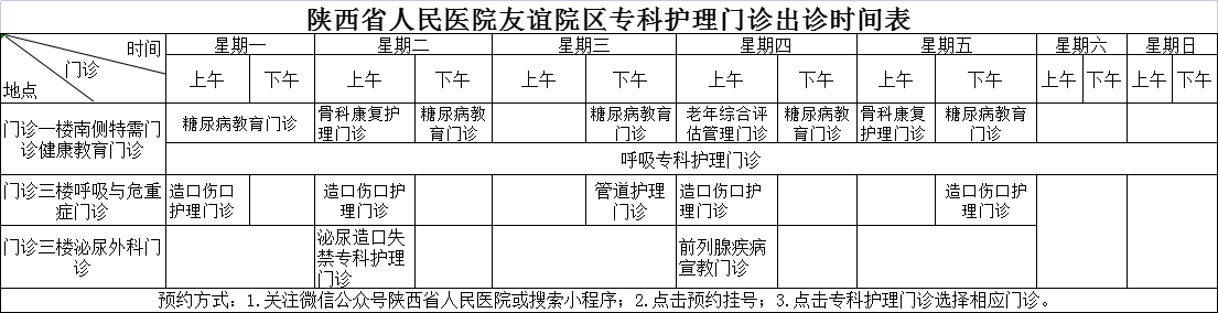 2.管道护理门诊出诊地点调整为门诊三楼呼吸与危重症门诊诊区306诊室,时间为周三下午。