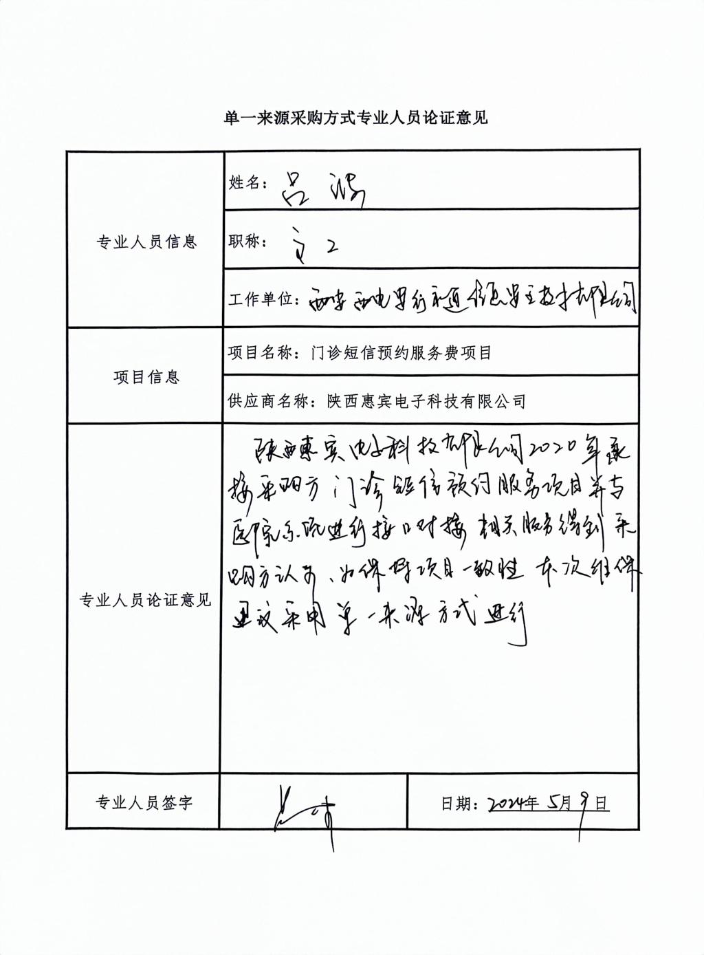 因2020年已跟此系统对接,为保持项目一致性,门诊短信预约服务费项目只能从唯一供应商处采购。