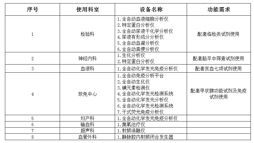 根据工作需要,21点技巧中心 医学装备部拟对以下医疗设备开展调研,欢迎相关设备厂家进行产品介绍,请将产品及配套耗材资料、资质、联系方式等信息发送至指定邮箱。