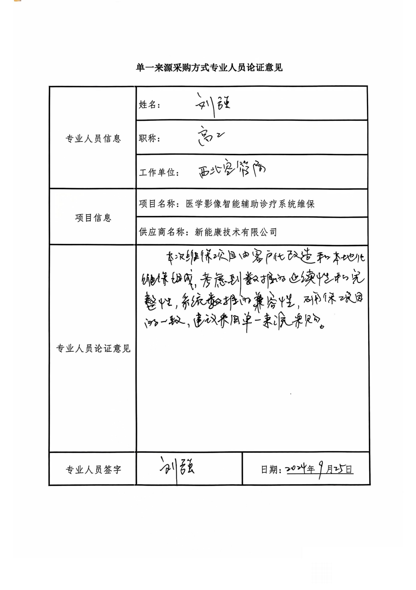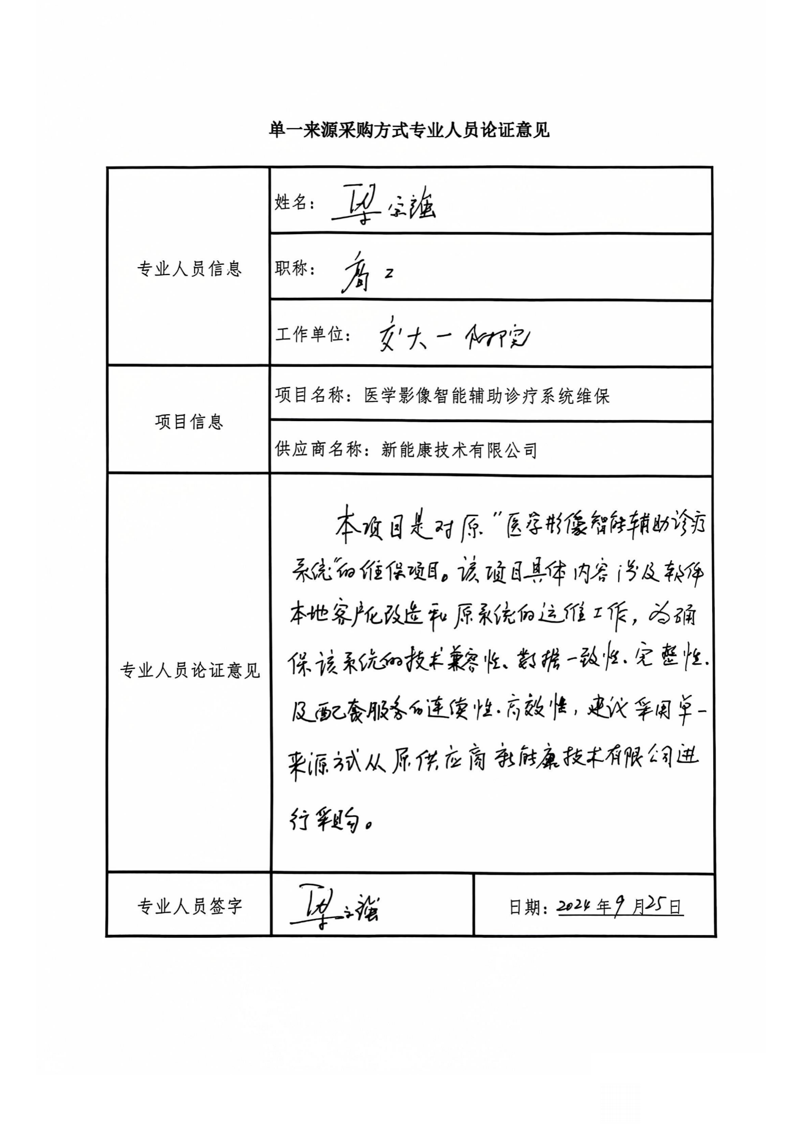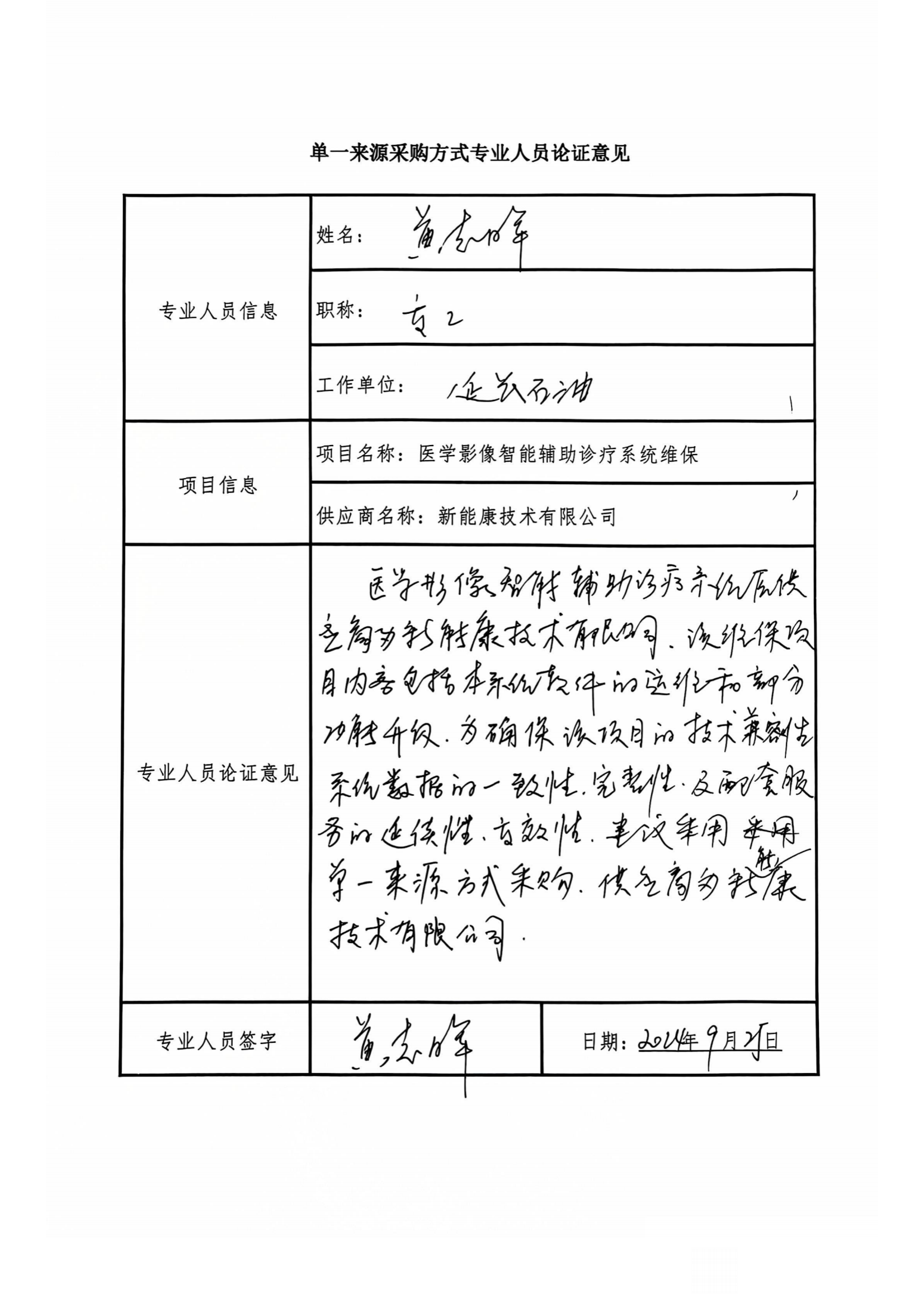 本项目是对医学影像智能辅助诊疗系统的维保项目,项目具体内容涉及软件本地化客户改造和原系统运维,为保证该系统的技术兼容性,数据的一致性、完整性以及配套服务的连续性,建议采用单一来源方式采购。