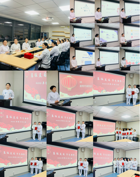 根据全年科室护士的业务完成情况及能力表现评选出各类优秀人员,共颁发了科研达人、最佳专科奉险奖等9项个人奖项,共17人获奖。团队奖2项。颁奖嘉宾为护士长及各位护士的临床导师。本年度获奖个人较多,获奖代表国际造口/伤口治疗师周鲜艳主管护师进行了发言,表示能够在团结友爱的学习型团队中和大家相知、共事、共同进步是一份荣幸和骄傲。会议最后,肖护士长进行总结,对科室护理团队一年来的辛勤付出给予了肯定、对大家的锐意进取给予了表扬,期望在2023年新起点新征程,大家能够以更加饱满的热情,不忘初心、砥砺前行,谱写护理工作的崭新篇章,为患者朋友提供更加优质的护理服务,助推护理学科的高质量发展!