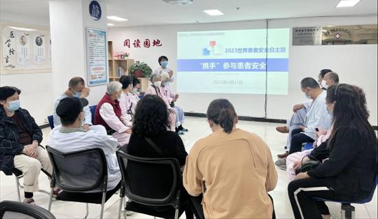 围绕2022年患者“十大安全目标”,紧扣2023年世界患者安全日主题“鼓励患者参与患者安全”,响应“提升患者的声音”这一口号,于4月21日下午在病区开展“携手参与患者安全”活动,分别从跌倒的预防及处理、安全用药、有效沟通3个方面进行讨论学习。期间患者们踊跃发言,从不同方面讲述了对安全的认识,提升了患者参与自身安全管理的意识。活动同时树立了以提升护理质量安全为目的,以护理安全文化为导向,倡导“以人为本、全员参与”的护理安全理念,营造了“人人重视安全,人人敬畏安全,人人参与安全”的氛围。
