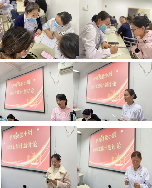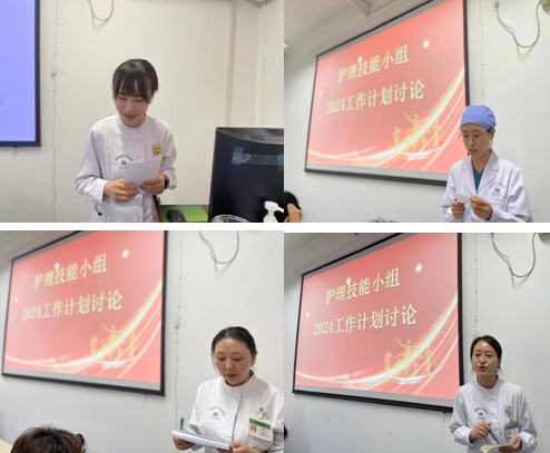 首先,李英副组长发言,肯定了小组成员工作的付出与取得的成绩。随后,肿瘤内科安静雪、重症医学科王丽、呼吸与危重症一科聂俊莹、急诊内科赵雪云分别进行了护理操作案例分享及科室培训工作经验分享,大家受益匪浅。陈转红副组长对2023年工作进行全面总结,提出技能小组要以“规范、精准、专业、引领”为理念,做好科室的技能培训工作,尤其做好3年内护士技能培训,不局限于传统的技能培训模式,可从互联网+到院外技能指导等开创技能培训新领域。最后,11个技能专科小组进行2024年度工作计划讨论。