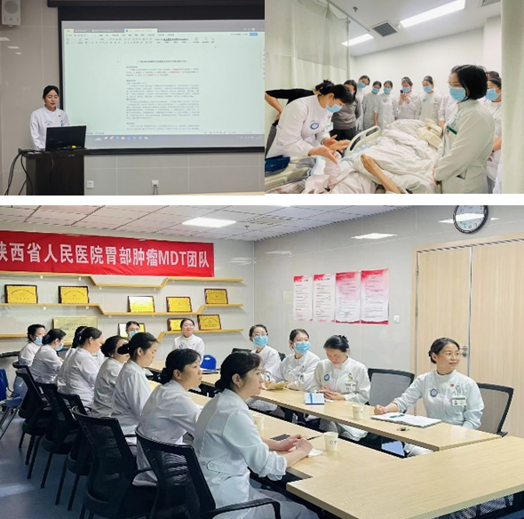 毛晶芳护士汇报患者的基本资料,提出患者现存和潜在的护理问题及相应的护理措施,刘娟副护士长对患者进行了细致专业的体格检查,如简易智力状态检查量表的评估,判断患者的记忆力、计算力、定向力等能力、徒手肌力的评估以及神经系统查体里面深反射的评估,并现场指导如何预防深静脉血栓、正确的患肢位摆放,重点就康复锻炼等方面做了生动的讲解和演示。全体护理人员结合前期查阅的文献资料,就如何为患者制定个性化护理措施集体展开讨论,大家各抒己见,气氛活跃,最后由刘娟副护士长就神经专科方面的问题一一做了详细的解答。