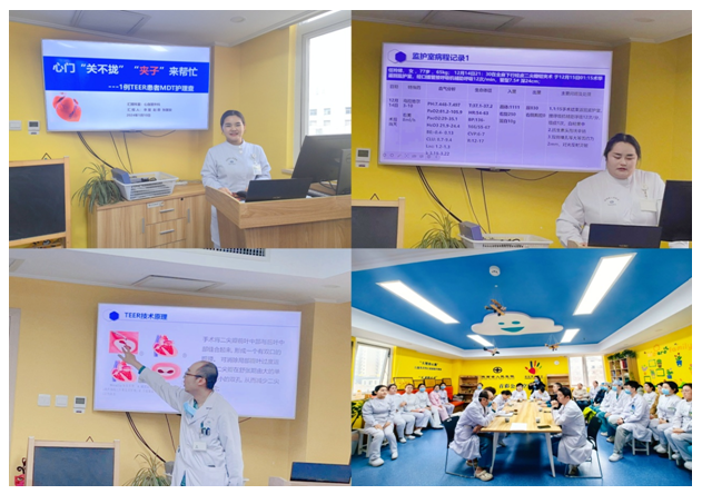 在李婷护士长的组织下,“一例TEER患者医护一体化MDT护理教学查房”拉开序幕,王沙副主任讲解了新技术TEER的相关知识。N2级护师李星、赵蓉以PPT形式汇报患者的基本资料,提出护理问题及相应护理措施。MDT讨论环节,各位专家围绕血压管理、气道管理、体位引流、术中配合、术后转运安全、全程康复等方面进行详细阐述。张艳总护士长充分肯定了本次查房的形式及内容,指出在循证护理的基础上能够发挥具有专科特色的创新点,值得学习。