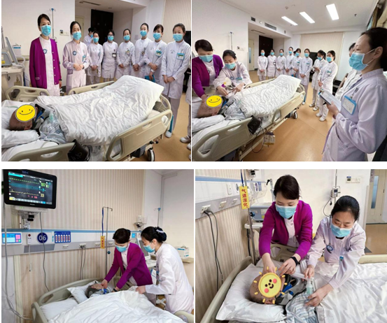 责任护士叱小宁按照“十知道”内容对患者近期病情进行详细汇报,并依据患者目前状况分析存在的重点护理问题及采取的相应措施。随后曾萍副护士长对患者的护理高风险点、潜在并发症及人文关怀等方面进行了补充,温馨副护士长针对呼吸衰竭分型等问题对实习生和N1级护士进行了提问,指导护士现场操作轴线翻身之外,还对本次查房进行了总结性发言。该患者入院以来,病情十分危急,94岁超高龄,颈部脊髓损伤合并重症肺炎,经过全科人员的不懈努力,护理人员严格按照护理程序执行,密切观察病情变化,及时了解患者护理需求,为患者提供了个性化、精准化护理服务,赢得了家属的高度信赖与赞扬。