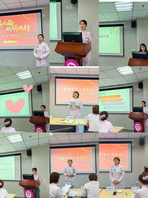 “四过关活动”是本年度护理培训的重点活动。教学组长负责“百问百答”和月理论考核;技能组长通过分层次管理,将护士按照标准合理划分为技能小组进行培训与考核,并设置小组长,通过加强对小组的督察,提升护理人员技能水平。质控方面,病区责任组长每周利用质控时间按质控标准对病区进行逐一检查,并汇总质控问题,在每周五及月底将质控问题汇总后进行全科交流,进行持续的质量改进。人文护理方面,妇科病区首创“健康小镇”“元气病房”,入院的一声祝福“您住的是苹果病房,寓意平平安安”……等将人文护理落地,给予患者积极正向的心理暗示,增加患者康复信心。典型案例分享方面,会中通过个案分享的形式,分享了临床上发生的一些典型护理案例的护理经验,达到共同提升服务水平的目标。会上同时对护理质量改进、六个核心项目(出入院流程、检查化验、加速康复、仪器设备、健康小镇、沟通交流)、四个专科特色的科研设计进行了汇报。