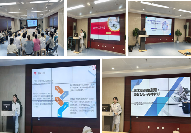 牵头编制,全面梳理成人手术后疼痛的评估方法与内容、评估时机、护理措施及健康教育等。该标准不仅规范了临床疼痛护理工作流程,并且对临床护士进行成人手术后疼痛评估与护理给予精准指导。护理研究生张曼就《围手术期疼痛管理》进行综合分析及学术探讨,通过文献综述讲解了围手术期疼痛管理的合理多模式镇痛。胸外科主管护师马琳通过疼痛个案护理查房指出,疼痛引发的心理问题包括但不限于焦虑、抑郁、恐惧等,针对不同的心理问题需要采用不同的心理治疗方法,以及对患者同时实施疼痛和心理护理的必要性,疼痛护理与心理护理的联合应用,可以提高患者术后的康复速度。疼痛护理小组组长李红文护士长对2024年小组年度工作计划进行解读。