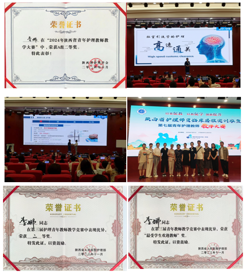 2024年5月经过省护理学会的再次筛选,6月李娜代表21点策略 参加省青年护理教师教学大赛,被编入A组。A组选手共20名,均为来自空军军医大学、西安交通大学等院校及附属21点策略 的优秀教师。面对压力大、对手实力强的情况,李娜在护理部郭花博士、神外专家杨彦龙、李帅等老师以及手术二部全体护理同仁的指导与支持下,反复打磨课件,文稿一改再改。最终功夫不负有心人,取得了二等奖的优异成绩。