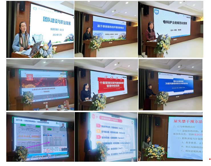 吴红娟、刘晓梅、赵文彩、畅雅学等护理专家,围绕“人文关怀”“精准护理”“安全保障”三大核心主题展开深入研讨,分别从专科护士的规范化管理、护理创新模式、团队建设与职业发展、以患者为中心的前列腺癌全程管理及经验分享、可视化电生理适宜技术的应用、个案管理、强化全程管理、DVT预防管理策略、术后尿失禁的护理等方面进行专题讲座。专家们强调了心理护理、患者沟通以及家属支持在前列腺癌患者治疗过程中的重要性,指出护理人员不仅要关注患者的身体状况,更要注重其心理和情感需求,通过建立良好的护患关系,帮助患者树立战胜疾病的信心;同时讲解了前列腺癌护理中的个性化护理方案制定、病情监测新技术以及并发症预防与处理的前沿经验,强调根据患者个体差异实施精准干预,以提高治疗效果和患者生活质量;还提出要通过案例分析与经验交流,强化护理人员的安全意识,确保护理过程中的专业化、精准化。