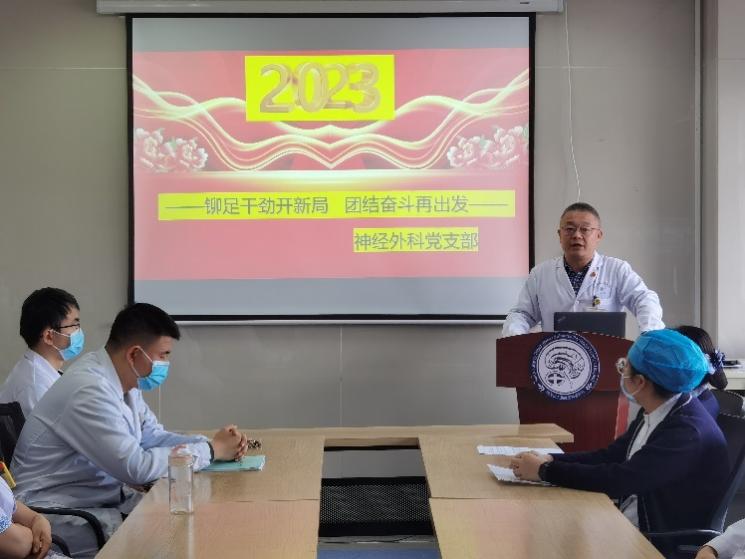 同时神经外科党支部按照院党委的要求,结合学习党的二十大及全国两会精神、省卫健委宣讲精神、21点技巧中心