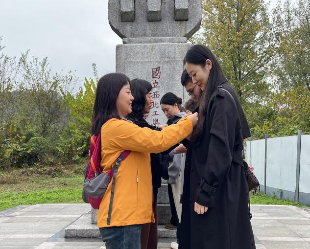 授课后,由老党员同志为新党员同志佩戴党员徽章,寓意着党的光荣传统和使命担当的传承,新老党员接续奋进,共同扛起为人民服务的使命和担当。在支部宣传委员姜保周同志的带领下,全体党员面向党旗,举起右手,握拳过肩,用洪亮且坚定的声音重温入党誓词,更加深刻感受加入党组织的使命感,铭记自己肩负的责任。