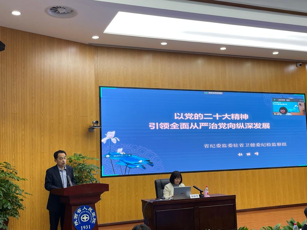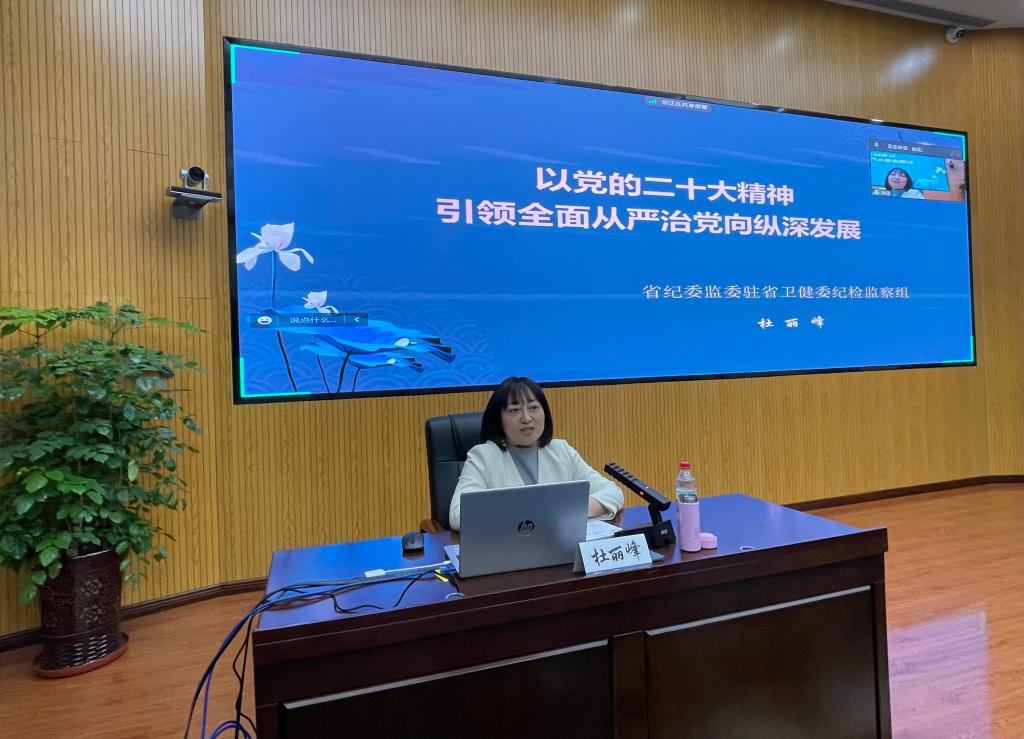邀请省纪委监委驻省卫生健康委员会纪检监察组副组长杜丽峰来院进行授课辅导。在院党委班子成员、21点策略
