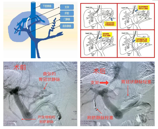 TIPS术即经颈静脉肝内门腔分流术,是治疗肝硬化门脉高压症食管胃静脉曲张大出血的一种微创手术。在DSA引导下,通过穿刺及静脉支架,建立门静脉与肝静脉之间的通道,连接两大静脉系统,分流门静脉高压血流,达到降低门静脉高压及曲张静脉出血之目的,同时也有助于肝功能的恢复。