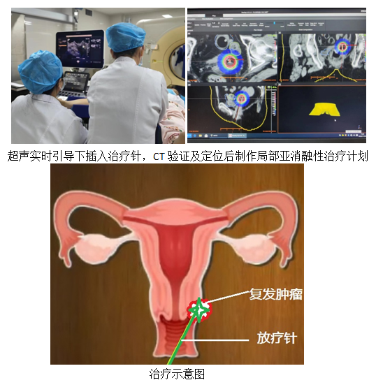 阴道超声引导下的宫颈癌插植后装治疗是一种全新的放射治疗方法,通过在阴道内插入超声探头,实时监控和引导插植针的精确定位,操作简便、安全有效,也减少了对周围正常组织的损伤。此方法突破了肉眼下直接观察难以明确肿瘤范围及深度的限制,通过超声的实时监测更精确地插入肿瘤中心区域。对于本例经外院治疗后局部复发的患者,可有效减少膀胱、直肠及小肠损伤风险,避免了大范围的放疗,更好地提高了患者的生活质量。