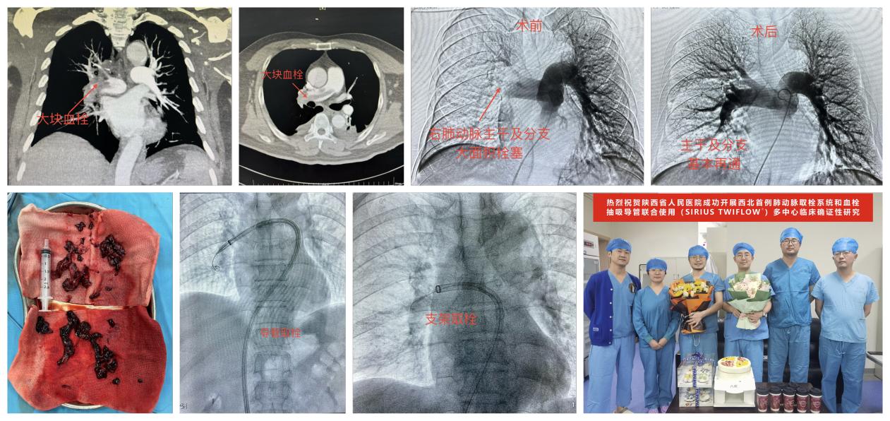 近日,心血管内二科寿锡凌主任领衔,由介入放射科实施,采用SIRIUS TWIFLOW®肺动脉取栓系统与血栓抽吸导管成功为1例急性肺栓塞患者完成了肺动脉血栓清除手术,作用显著,术后肺动脉压力从40/11mmHg下降至30/9mmHg,胸闷、气短症状明显缓解,随即脱离呼吸机。此次手术的顺利完成标志着“SIRIUS TWIFLOW®肺动脉取栓系统与血栓抽吸导管联合使用”全国多中心确证性临床研究在西北地区正式拉开序幕。