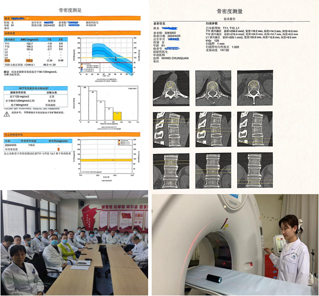 当前在骨质疏松的诊断方面,主要的检查方法是双能骨密度DXA)和QCT。但是,DXA测量aBMD时受到体重、骨质增生、脊柱退变和侧弯的影响。当遇到体重过低、严重肥胖、脊柱侧弯、脊柱退变和椎体骨折等情况时,《中国骨质疏松杂志》同期发布的QCT指南里,明确建议采用QCT骨密度测量。前期CT室在骨科病院进行了课程宣讲,围绕QCT的原理和临床应用等进行交流探讨,取得了良好的效果。
