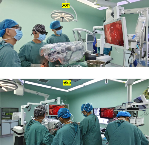 经过神经外科缪星宇主任团队系统化的专业评估科室手术讨论,患者手术指征明确,术前经过严格的手术路径设计,拟在术中使用3D外视数字手术显微镜。此系统结合了显微镜与神经内镜功能,使得传统手术方式发生了根本性的变化。与传统的基于目镜的显微镜相比,该系统提供了更清晰的画面、更优越的景深、更广阔的视野,基于优秀的照明技术及背光照明3D荧光模式应用,让神经外科医生能更精确地观察术野组织及血管,进一步提高手术精度;另外神经外科医生在进行手术时可以保持一种符合人体工学的舒适姿势进行手术,助力术者以更便捷舒适的方式高效完成显微外科手术,显著提升团队协作和教学效果。在3D外视数字手术显微镜的帮助下,手术团队精准切除肿瘤,达到对神经功能的最大保护,患者顺利康复出院;术后病理证实为脑膜瘤(WHO I级)。