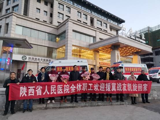 党委书记高敬龙、纪委书记王利军代表院党政领导班子成员,带领院办、医务处及队员所在科室负责人去眉县迎接四位队员。省卫健委医政医管局副局长马欣代表卫健委到场迎接。
