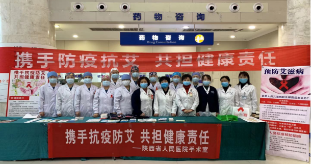 预防保健科和手术室再次在一楼门诊大厅开展防疫抗艾系列活动。活动向广大人民群众进行艾滋病健康知识宣教,并发放艾滋病防治手册及安全套,卫生纸等小礼品。通过内容丰富的宣传方式,提高了广大群众对艾滋病的认知,增强了艾滋病预防意识和检测意识,让“携手防疫抗艾 共担健康责任”的理念深入人心。