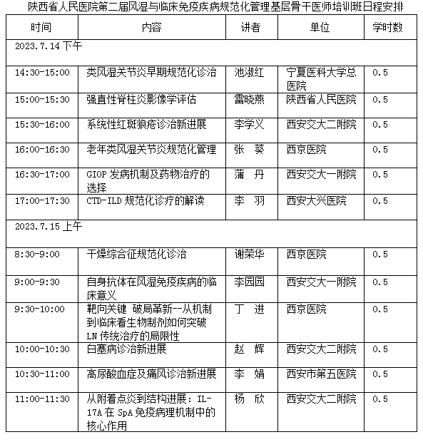 第二届风湿免疫疾病规范化管理基层骨干医师培训班”,参会对象为全省各级医疗机构从事风湿免疫疾病的临床工作者。