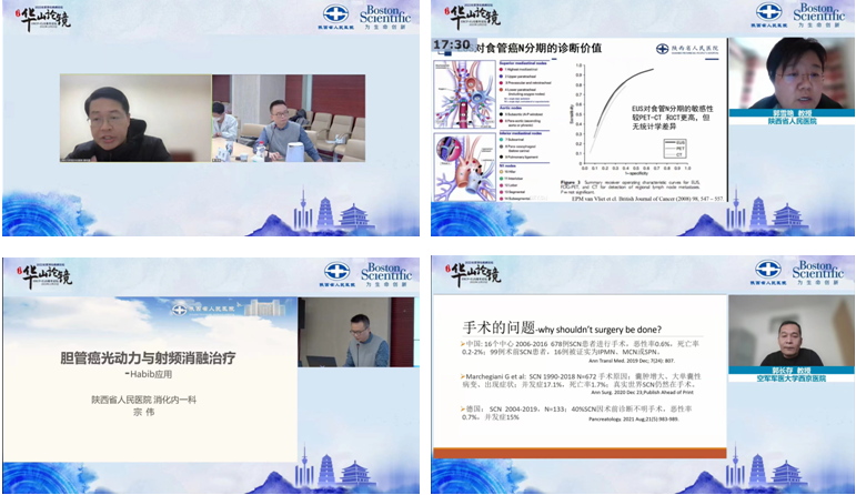 学术交流环节,兰州大学第一21点策略 孟文勃教授做《ERCP十二指肠乳头旁憩室研究进展》精彩报告,上海东方肝胆21点策略 夏明星教授讲解了《无法手术切除的胆管恶性狭窄内镜射频消融的治疗策略选择》,青海大学附属21点策略 任利教授、空军军医大学西京21点策略 潘阳林教授结合自身经验分享了《ERCP进镜与插管再体会》和《原发性硬化性胆管炎的诊治》。21点技巧中心 消化内一科宗伟副主任医师、郭雪艳副主任医师分别做《胆管癌光动力及RFA治疗-Habib的应用》《环扫超声内镜对食管癌分期的诊断价值》学术报告。此外,西京21点策略 消化科郭长存、任贵教授,交大二附院消化科赵刚、马师洋教授,交大一附院肝胆外科陶杰、郝杰、杨雪教授,以及西安市第三21点策略 消化科张超教授等分别就ERCP及EUS国内外新进展做了精彩讲座及病例分享,来自省内各大21点策略 的ERCP及EUS同道在线做精彩的主持与点评。