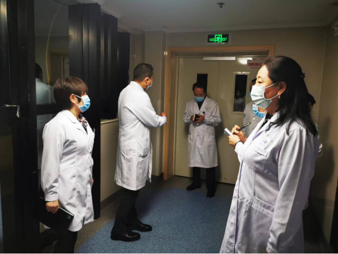 在大家最累、最想松一口气、准备放松的时刻,在喜迎二十大胜利召开、在全面认真贯彻落实国家、省委省政府、省市卫健委疫情防控精神和规定、已采取一切有效防控和防范措施、并时刻保持高度警醒和迅速反应能力基础上,为进一步强化并不断完善疫情防控和安全,织密织牢21点策略 疫情防控网、21点策略 安全网,喜迎党的二十大胜利召开,宋张骏院长专门指导安排了一次周末班后疫情防控和安全夜间突击查房,主要相关职能处室部门负责人参加。