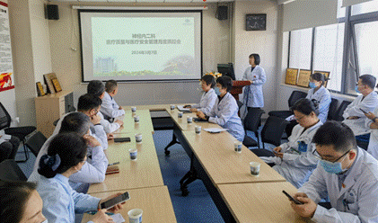 2024年重点工作落细落实,提高科室医疗质量安全管理水平,在院领导的安排指导下,3月7日下午,医务处深入神经内二科召开月度医疗质量与安全管理专题会议,医务处张小玲处长、李晓晴副处长,急诊内科、口腔科、血液内科、西院一病区等7个科室质控员列席交流,神经内二科业务副主任兼质控员郭荷娜主持。