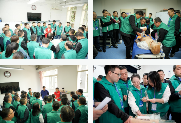 创伤中心杜工亮教授,CTCT项目秘书蹇廷旭教授担任培训导师。培训内容包括理论授课、案例讨论、技能操作、测试座谈、电教片展示等形式。理论授课通过精美的课件及丰富的创伤救治和教学经验,展示了创伤概论、创伤评分、重症监护、紧急手术、各部位创伤的处理等创伤救治安全、规范的理念和知识。通过电教片系统介绍了骨盆固定装置(T-POD)、急诊困难气道处理、超声引导下中心静脉穿刺(CVC)、创伤填塞止血术和开放腹腔手术等实用的创伤救治技术;并针对常见的严重创伤典型案例进行了讨论式教学,引导学员对创伤患者进行规范、及时、有效的治疗,学员们学习热情高涨,积极主动发言。