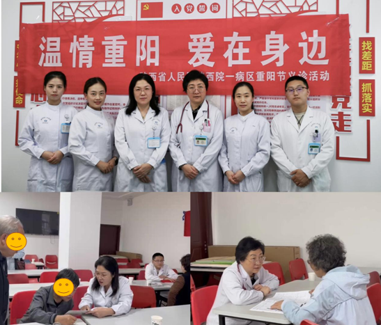 金秋十月秋风爽,九九佳节话重阳。10月13日下午,在重阳节来临之际,为大力弘扬中华民族尊老、敬老、爱老、助老的传统美德,增强老年人的预防保健意识,普及慢性病知识,传播健康理念,西院一病区赵媛主任带领科室医护人员走进陕西省高级人民法院家属院开展以“情暖重阳节,义诊送健康”为主题的关爱活动,为老人们送上温暖与关怀。