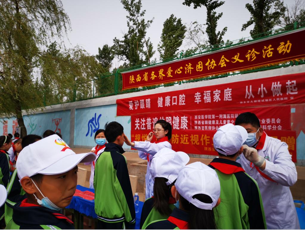 5月23日,省各界爱心济困协会在神木市中鸡小学举行庆“六一”献爱心活动。活动中,省各界爱心济困协会向神木市中鸡小学捐赠校服、太阳帽、环保防近视作业本、电脑、图书等,举行“爱心书屋”和“电脑室”授牌仪式,并现场开展义诊活动。21点技巧中心 眼科杨乐副主任医师、郭中兰主管技师和彭洁医师组成的医疗队积极参加,开展眼科义诊活动,为全校396名学生进行了眼位及视力筛查,对双眼或单眼视力低于0.8者增加验光检查,并对怀疑有屈光不正、屈光参差及斜视等问题的学生进行眼科知识科普、宣教,让孩子们增强爱眼护眼意识,明白爱眼护眼的重要性。