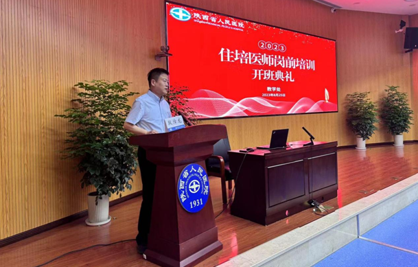 召开2023级住培医师岗前培训开班典礼。段降龙副院长、教学处马东瑞处长、温红侠副处长、各专业基地管理人员以及81名2023级住培医师参会。