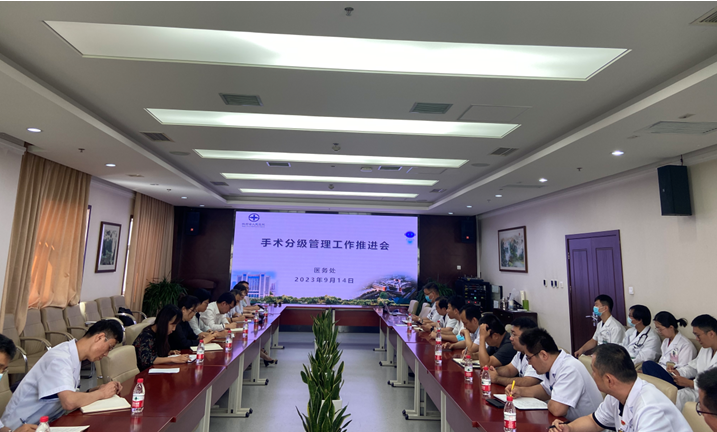 完善手术分级管理体系工作推进会。王建华副院长、医务处相关人员、全院手术相关科室主任和负责手术分级管理工作的专干参加会议。医务处张小玲处长主持会议。