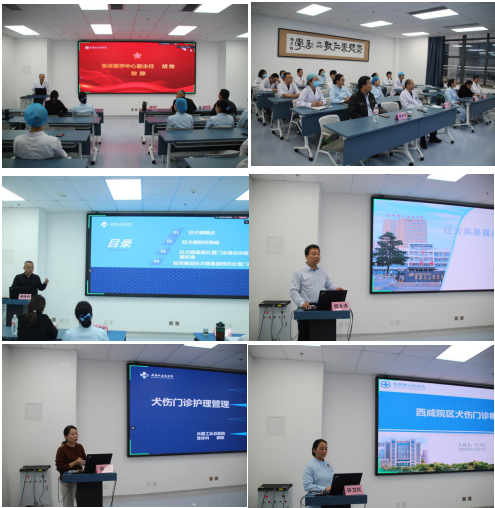 唐映利主任团队的专家进行授课,内容涵盖了犬伤门诊的建设与管理、狂犬病暴露规范化处置流程、犬伤门诊护理管理等多个方面。