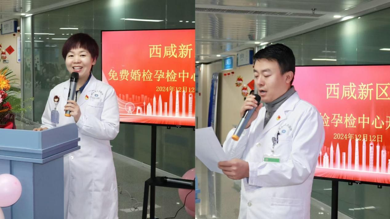 西咸院区设立免费婚检孕检中心。12月12日上午,西咸院区在门诊三楼举行婚检孕检中心揭牌仪式。段降龙副院长、西咸院区任柯院长助理、党政管理部、业务管理部、保障管理部负责人及产科、移植泌尿外科等相关科室代表参加揭牌仪式。产科党群副主任主持。