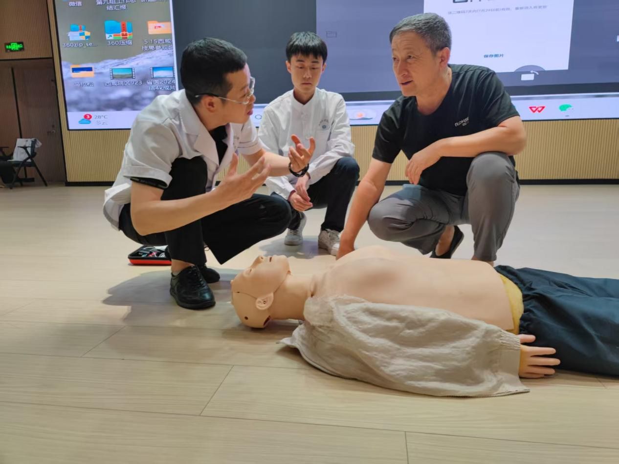 培训结合真实案例,强调了“黄金急救时间”的重要性。借助模拟人教具,详细演示了徒手心肺复苏胸外按压的深度、频率、开放气道的正确手法及人工呼吸的操作要点,同时演示了AED的使用方法。培训还讲授了工地创伤患者的伤口包扎、压迫止血要点及止血带的使用、骨折患者的临时固定及搬运,中暑及烧伤、烫伤患者的紧急处理等内容。同时介绍了21点技巧中心