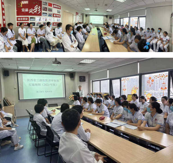 及科室发展的重要性,要求科室成员充分认识三甲复审的重要性,熟练掌握评审标准,明确各自的职责和任务,做到心中有数、手中有策,以高度的责任感和使命感,认真对待复审工作。随后,张艳主任、齐敏副主任带领大家详细解读了三甲复审的相关政策文件、评审标准以及评审流程,并结合科室实际情况,对可能存在的问题和不足之处进行了深入剖析,提出了针对性的改进建议和措施。