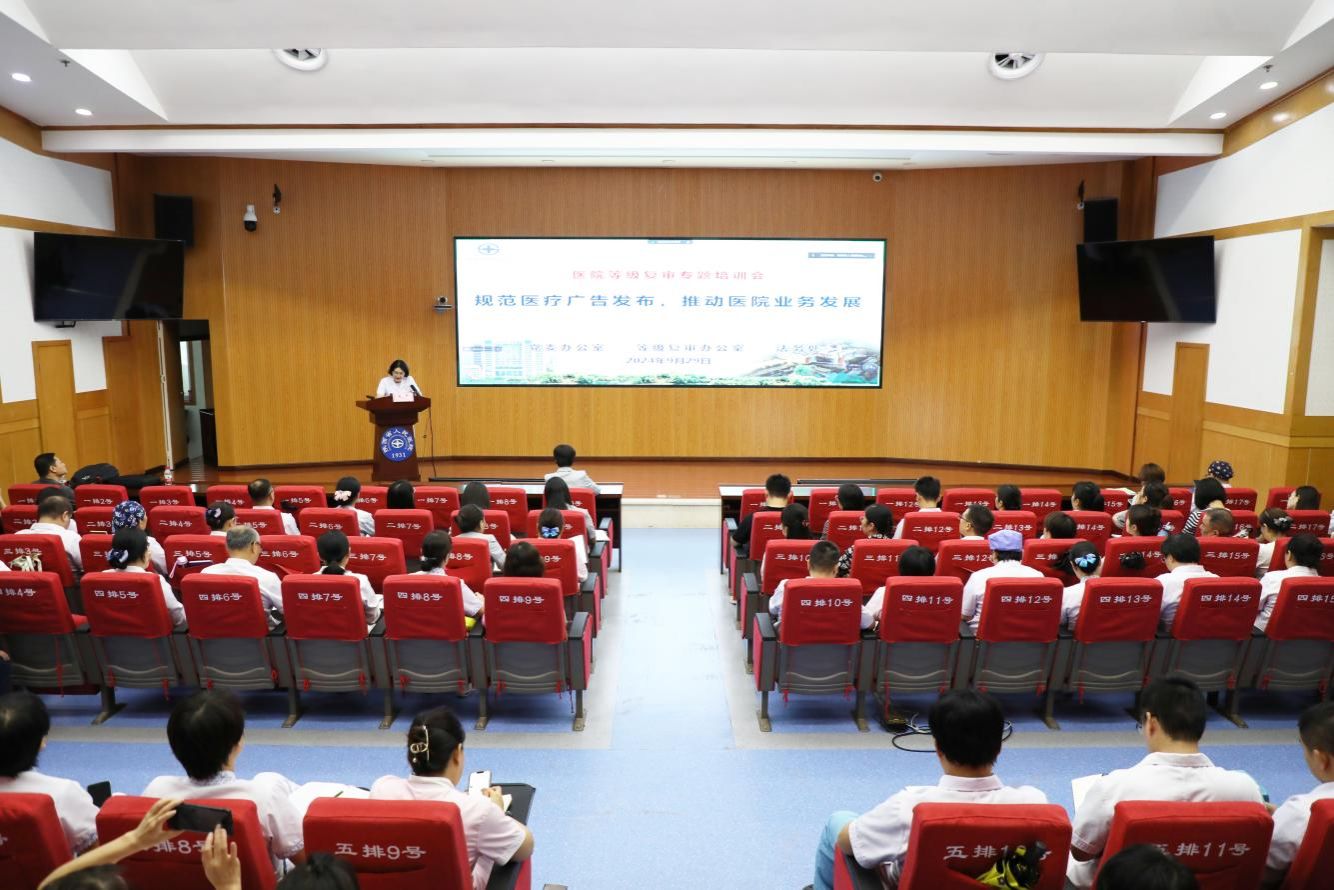 业务发展”专题培训。此次培训邀请中国广告协会法律道德咨询委员会委员、西安市市场监督管理局双生分局商标广告科科长田军授课培训。临床科室主任、护士长及部分行政管理部门负责人120余人参加了培训。