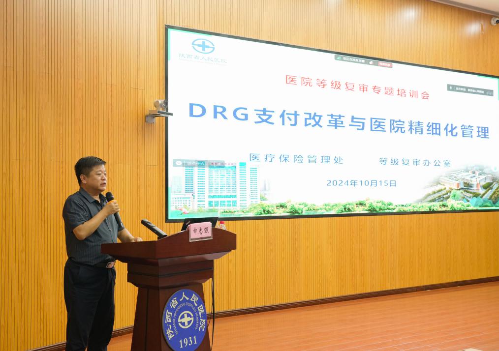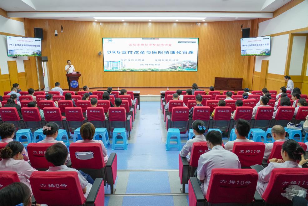 申志强副院长来院开展医保支付方式改革培训讲座。培训会由马富春副院长主持,全院行政部门负责人、临床医技科室主任、业务副主任、护士长,DRG专管员、等级复审联络员等共200余人参加。
