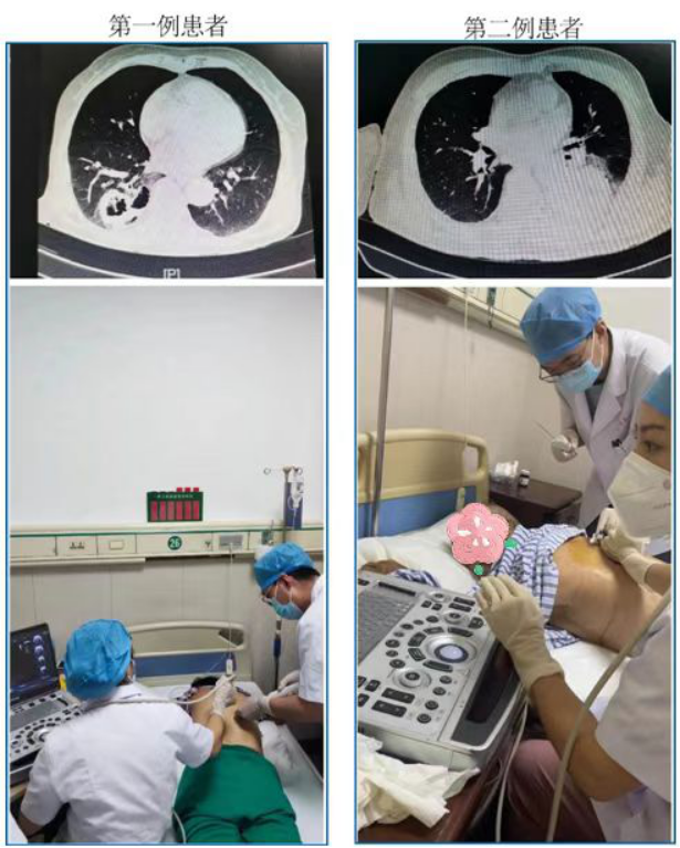 的胸外科朱建飞医生和B超室亢春苗医生,联合指导该院成功开展了两例B超精准引导下经皮肺穿刺活检术。